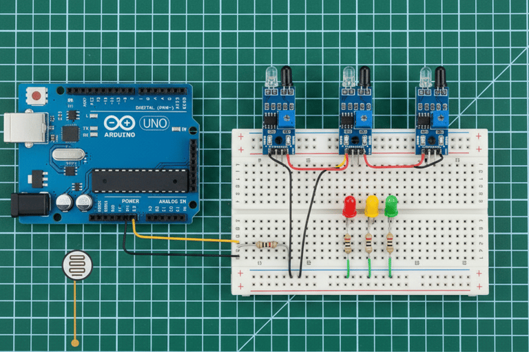 A motion-activated street lighting system for urban sustainability. Built with Arduino, this project aims to reduce energy consumption by ensuring lights are only on when needed.